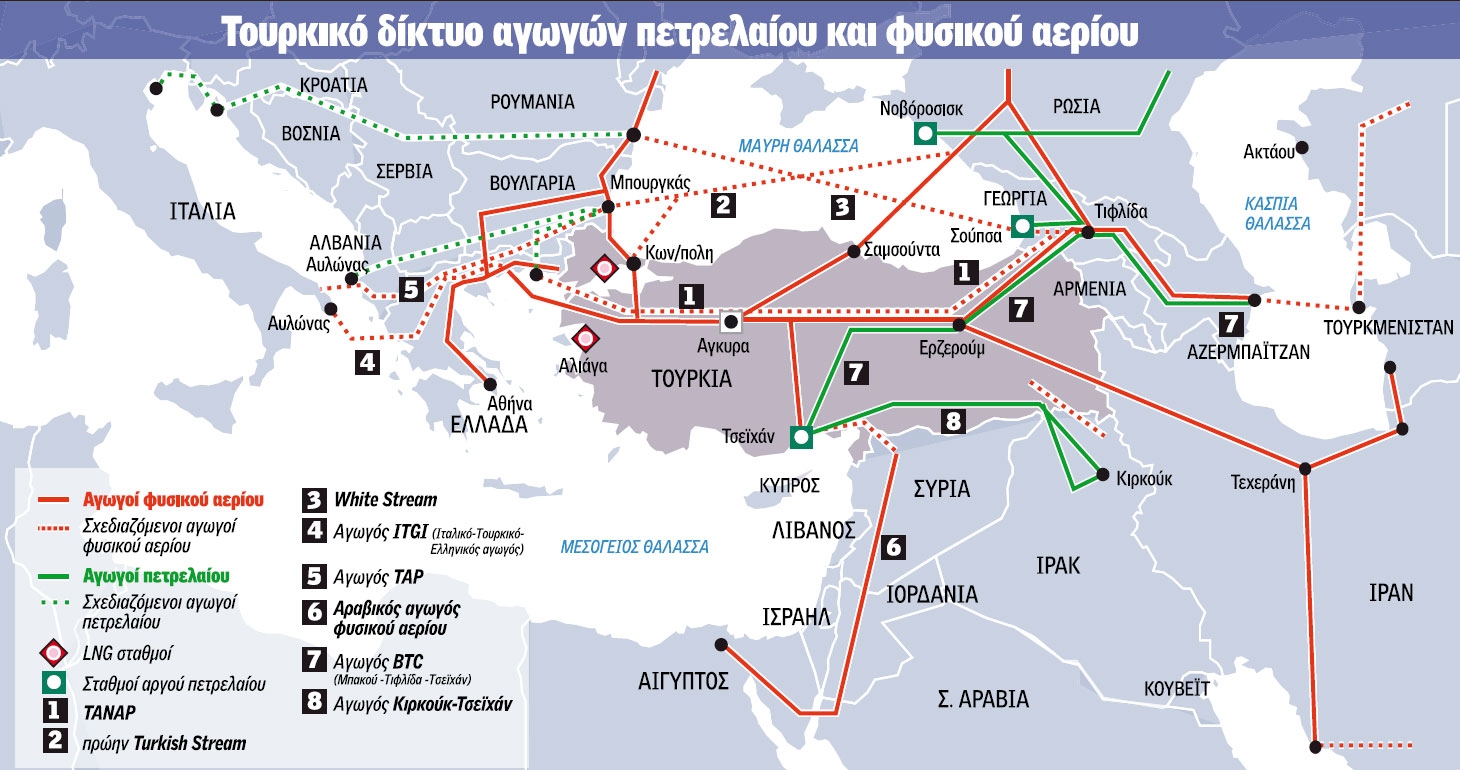 Το 2011, ο αραβικός αγωγός φυσικού αερίου που εκτείνεται από την Αίγυπτο στην Ιορδανία, το Ισραήλ και τη Συρία απείχε περίπου 100 χιλιόμετρα από το να φτάσει στο τουρκικό έδαφος. Οι δύο χώρες ετοιμάζονται τώρα να χρησιμοποιήσουν αυτή τη γραμμή για την παροχή αιγυπτιακού φυσικού αερίου στον Λίβανο και εξετάζουν το ενδεχόμενο να το χρησιμοποιήσουν και προς τις δύο κατευθύνσεις, γεγονός που ανοίγει μακροπρόθεσμα την πόρτα για τη σύνδεσή της με το τουρκικό δίκτυο, το οποίο θα λάβει μεγάλες ποσότητες ρωσικού φυσικού αερίου κατά τη διάρκεια τα επόμενα χρόνια.