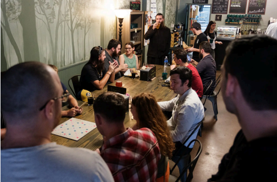 Νέοι Ορθόδοξοι Χριστιανοί στο Ράλεϊ της Βόρειας Καρολίνας συγκεντρώθηκαν σε ένα βιβλιοπωλείο-μπαρ σε ένα πολυτελές εμπορικό κέντρο στη βόρεια πλευρά της πόλης τον Αύγουστο. Cornell Watson για τους New York Times