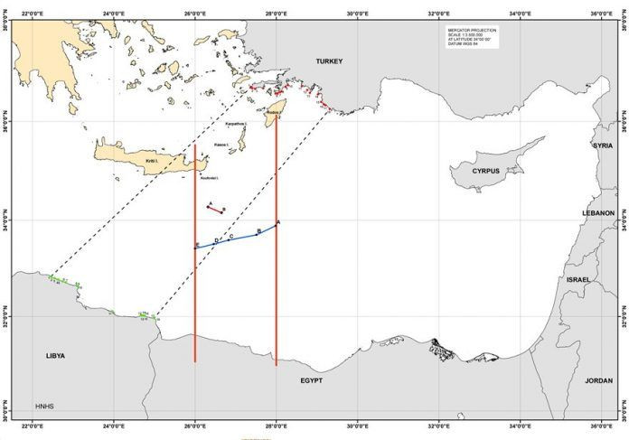 Σημειώνεται πως τα εν λόγω οικόπεδα έχουν χαραχθεί στη βάση του Ν. 4001/2011, ο οποίος προβλέπει ότι, ελλείψει συμφωνίας οριοθέτησης, για την Ελλάδα θα ισχύει, μέχρις ότου υπάρξει συμφωνία, η μέση γραμμή, όπως την ορίζει η χώρα μας. Τα οικόπεδα αυτά επικαλύπτουν το μεγαλύτερο μέρος της αυθαίρετης, βάσει του παράνομου Τουρκολιβυκού Μνημονίου, «οριοθέτησης» ΑΟΖ από την πλευρά της Λιβύης.