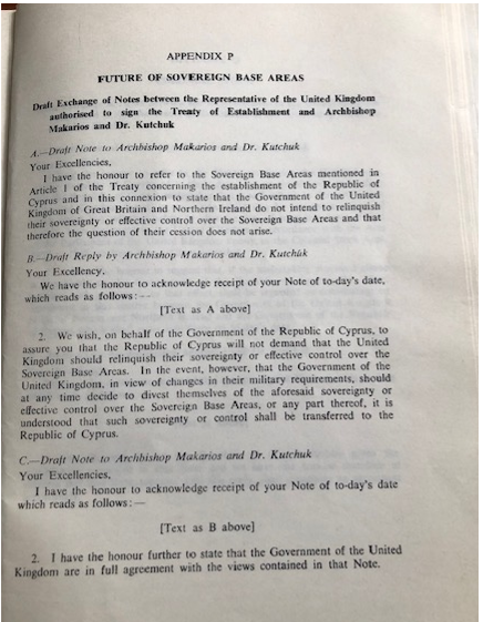 «Κλασική περίπτωση ατελούς διαδικασίας απο-αποικιοποίησης… Δεν υπάρχει κανένας κίνδυνος για την Κυπριακή Δημοκρατία (για άνοιγμα συζήτησης) … Το Ανώτατο Δικαστήριο στο Λονδίνο επιβεβαίωσε ότι οι Βάσεις αποτελούν στην ουσία την ουρά της αποικίας…».